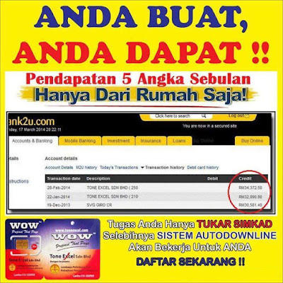 modal nak join pun hanya RM100 sahaja seumur hidup!! then kerja kita hanya buat promosi produk simkad tune talk..amat mudah..so untuk permulaan jom SIGN UP FREE kat sini --> Tune Talk Tone Excel