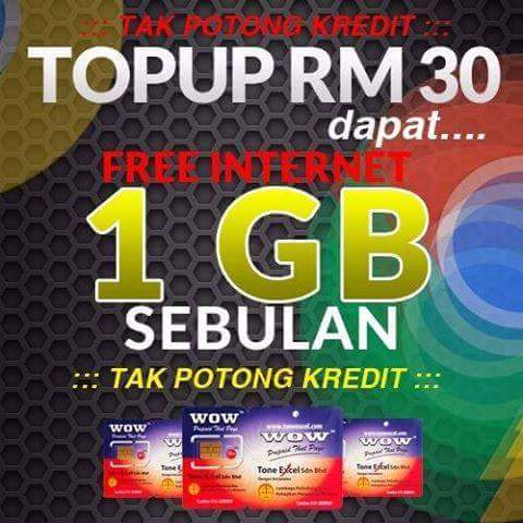 - Topup RM30, dpt FREE data 1GB. Kredit kekal RM30 untuk call/sms